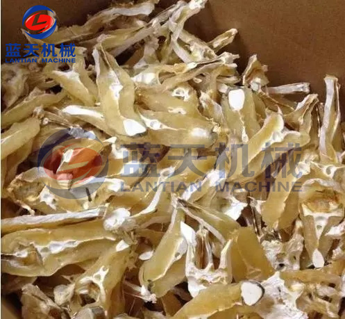 2、洗滌:剖割后在血液凝固前,用刷子逐條地在清水中洗刷去血污、粘液,放進(jìn)筐內(nèi),滴干水分。