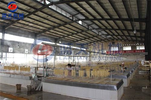 第三步——蒸煮抄條,將豆?jié){加熱時,表面出現(xiàn)一層膜,即可將豆?jié){膜掛至竹竿上(此步稱為抄條),竹竿掛滿后轉(zhuǎn)移至烘車上。抄條時高溫操作注意操作人員人身安全。