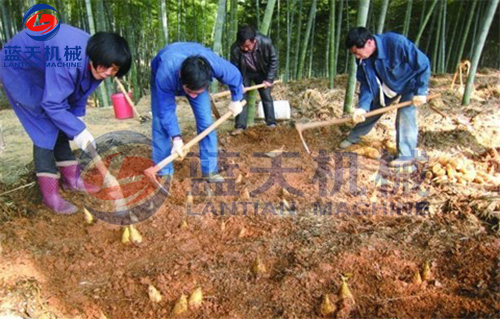 到竹林里挖竹筍。選筍開挖準則:選擇地面凸起開裂的的地方并延著凸起外圍開挖,避免破壞竹筍。還沒冒出地面的竹筍鮮嫩,已冒出地面的竹筍老,纖維多不要挖。
