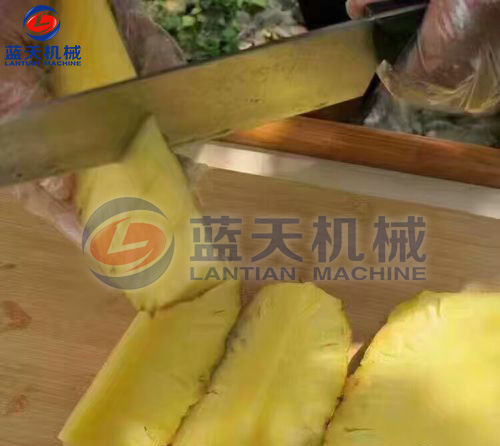 第二步:菠蘿切片的過程,烘干前期切片可以切圓片,或者半圓片都可以,主要看產品要求。