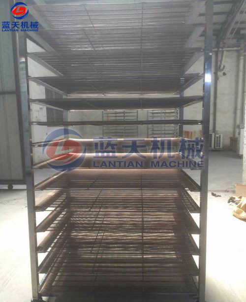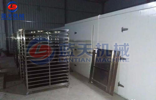 1)將木耳或云耳一層層均勻擺放至特氟龍材質的托盤后,放入不銹鋼物料車,推入木耳烘干房,木耳烘干時的溫度應從35℃開始,如果溫度過高,排濕跟不上,容易引起木耳變形。