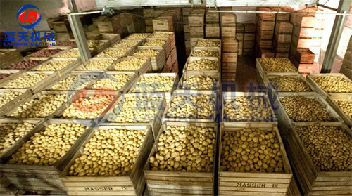(6) 烘干:將處理好的馬鈴薯丁或薄片攤放烘盤上,厚度10~20mm,置于騏成全智能化烘干房中,溫度為65~70℃。干燥后期溫度勿超過65℃,完成干燥需要5~8小時。含水量降低到7%以下,即已完成干燥過程。