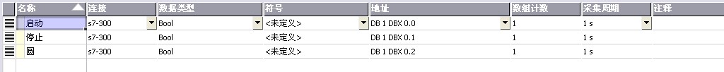 引用連接到s7300中的DB1_DBXO_0和DB1_DBXO_1。。然后是啟動(dòng)按鈕連接了啟動(dòng)變量,停止按鈕連接了停止變量