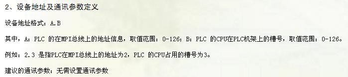 其中小數點前為MPI地址(即站號),小數點后為MPI設備(即所使用的通訊模塊或CPU模塊)的槽號(slot number)范圍為.0~126.126,建議使用常用的地址范圍為2.2~126.30.一般PLC默認的地址(即站號)為2,槽號為2,組態王設備地址定義為2.2.
