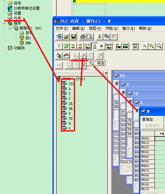 1、在CX-Programmer中雙擊內存,然后在隨后的對話框中可以設置上載哪部分或者全部。