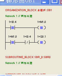 按2樓圖,接通I0.4,M1.0、Q0.1接通;斷開I0.4,第1個掃描周期時,這時的M1.0仍是接通的,又I0.4的常閉點接通,故M1.0保持接通,Q0.1還是接通。