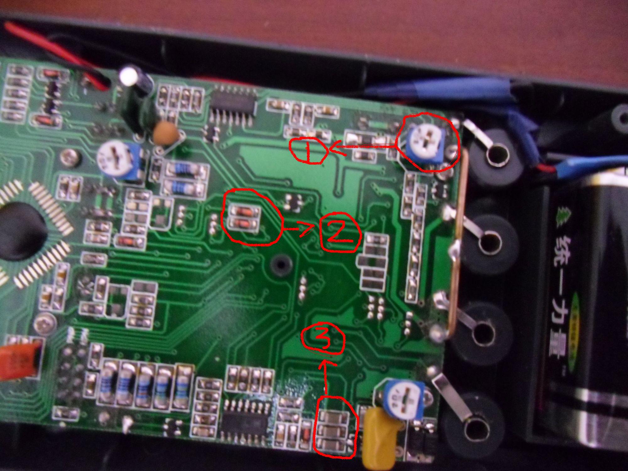今天我拆了我自己用的數字萬用表看看,里面的有些元件不認識,還請大俠們幫忙指認,圖中標的1,2,3處指的都是什么東西呢?