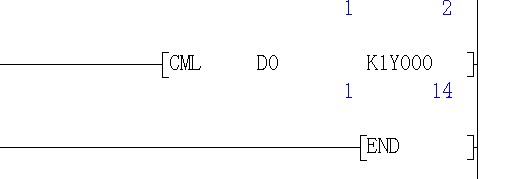 我覺得K1Y0表示Y0,Y1,Y2,Y3,D0的1對應的是Y0輸出,取反就是Y0不輸出,所以Y0不輸出,Y1,Y2,Y3輸出,也就是1對應二進制是0001取反后是1110,,1110的十進制是14