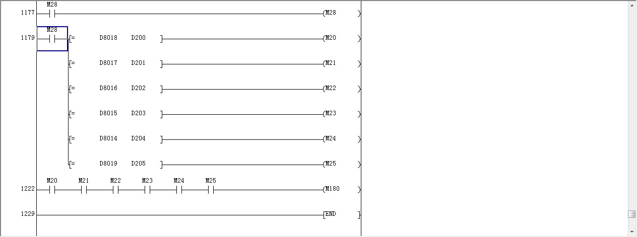 比較指令,沒什么復雜的,主要是設置密碼用的。如果刪除有可能對整個程序有影響。如果是廠家設置的密碼不可能就這樣一刪就可以解決問題的?赡躆20-M25還與程序中其它部分有關聯。所以不能簡單刪除,應該看一下整個程序再作決定。