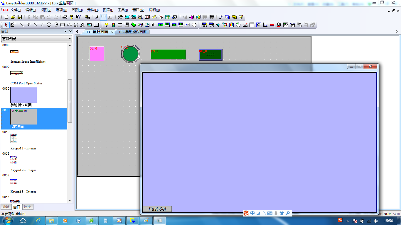 威綸觸摸屏編程軟件EB8000 新建窗口離線模擬不顯示元件什么原因啊?求大俠們幫忙!
