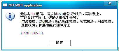 無法于PLC通信,請拔掉USB電纜5秒以上再裝上。