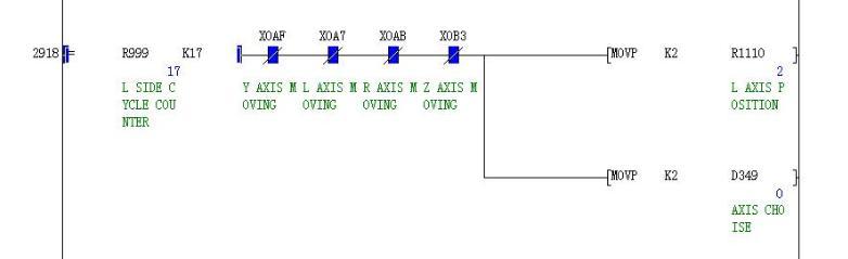 上面的程序中,D349在條件滿足時卻沒有被給值2,而R1110已經(jīng)正常給值2,此時并沒有其它地方給D349值,什么原因?是PLC運(yùn)行錯誤嗎?