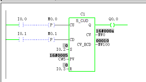 CV_BCD端輸出的MW100是BCD碼10(大概相當(dāng)于十六進(jìn)制的10),在比較指令時作為十進(jìn)制顯示,要把十六進(jìn)制的“10”更換為十進(jìn)制的“16”