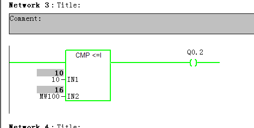 CMP是比較。即當(dāng)IN1<=IN2時,滿足CMP<=1的條件,則有Q0.2輸出。