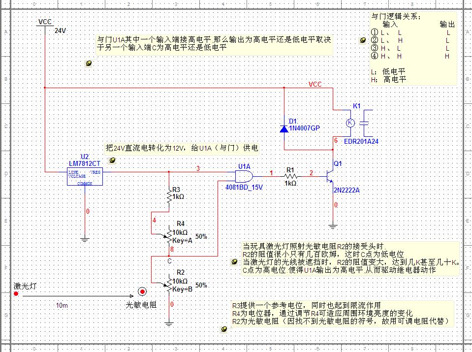 用玩具激光燈發射光束,光敏電阻接受。此實驗是在室內有照明燈時進行。當激光燈發射光束照在光敏電阻上時,光敏電阻的阻值為幾百歐姆或更。划敍]有激光燈發射光束照在光敏電阻上,但有室內照明燈光時(非直射),光敏電阻的阻值為十K左右;當用手捂住光敏電阻時,光敏電阻的阻值為幾十K或上百K。由于室內范圍有限,測試距離為10米。