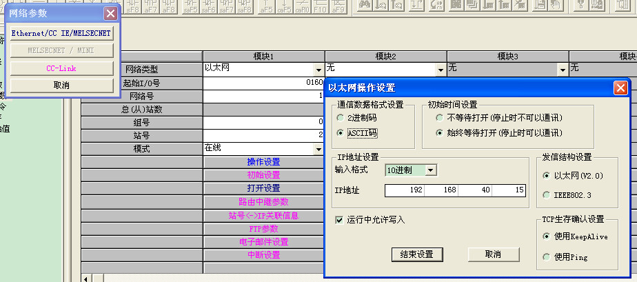 設置好PLC端的參數,包括PLC網絡模塊的IP地址等,然后下載到PLC,斷電重啟,