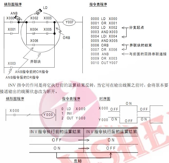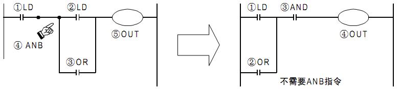 執(zhí)行相同動(dòng)作的梯形圖通過(guò)優(yōu)化觸點(diǎn)構(gòu)成的方法,可以簡(jiǎn)化程序和節(jié)約步數(shù);驹瓌t是串聯(lián)較多的梯形圖盡量寫在上方,并聯(lián)觸點(diǎn)較多的梯形圖盡量寫在左方。