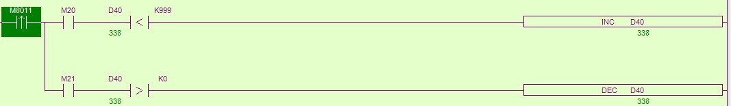 數據存儲D40通過M21和M20控制,現在有一個問題數據存儲器D40在增加或者減少時,求變量 Δ=An+1_An