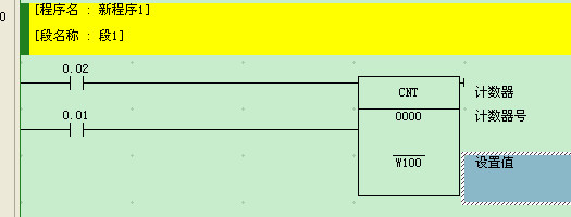 觸摸屏里面設定計數器的地址和PLC里面的地址對應就行了,例如下圖的計數器設定值的地址是W100。0.02接通,開始計數,0.01接通,0.02斷開;計數器復位。