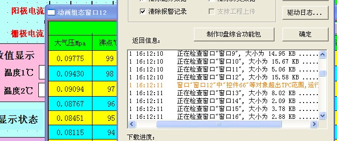 下載工程時提示"窗口12"中"控件66"等對象超出TPC范圍,運行時......