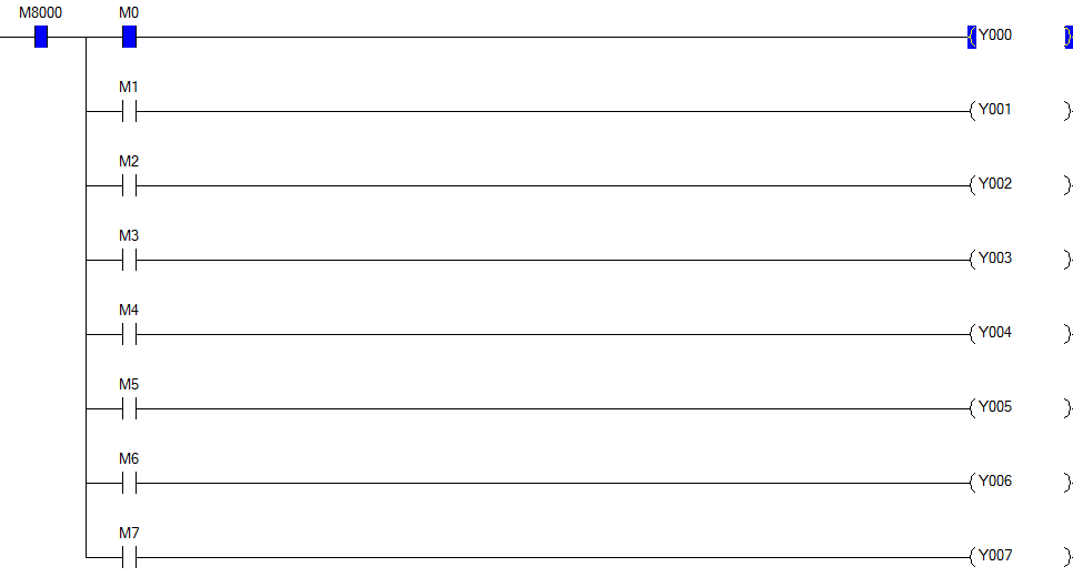 三菱梯形圖,手動部分,同一個按鈕,每按下一次順序動作置位一個動作。第二個按鈕每按一次,按照反順序復位一個動作。懇請大神賜教。多謝了。