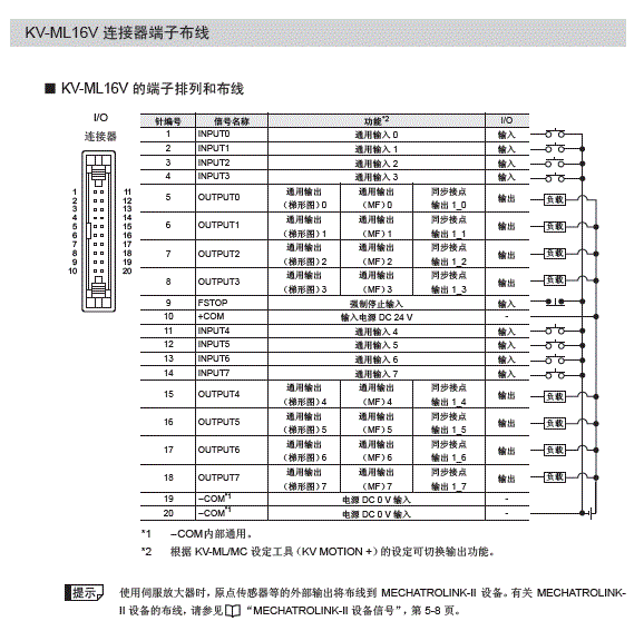 自帶的是16入8出的I/O,點位分布如圖。其中R000-R015是輸入,R500-R508是輸出。R500-R503可做高速輸出端,輸出頻率為100K。