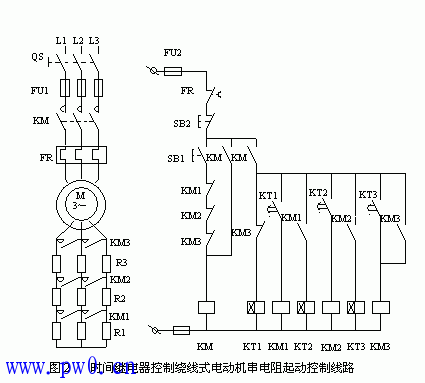 Q點應該是接電阻器調速用,也有可能用于起動,降低起動功率,可以咨詢電機廠家,個人意見配了電阻可以參照星三角電路啟動電路多兩接觸器