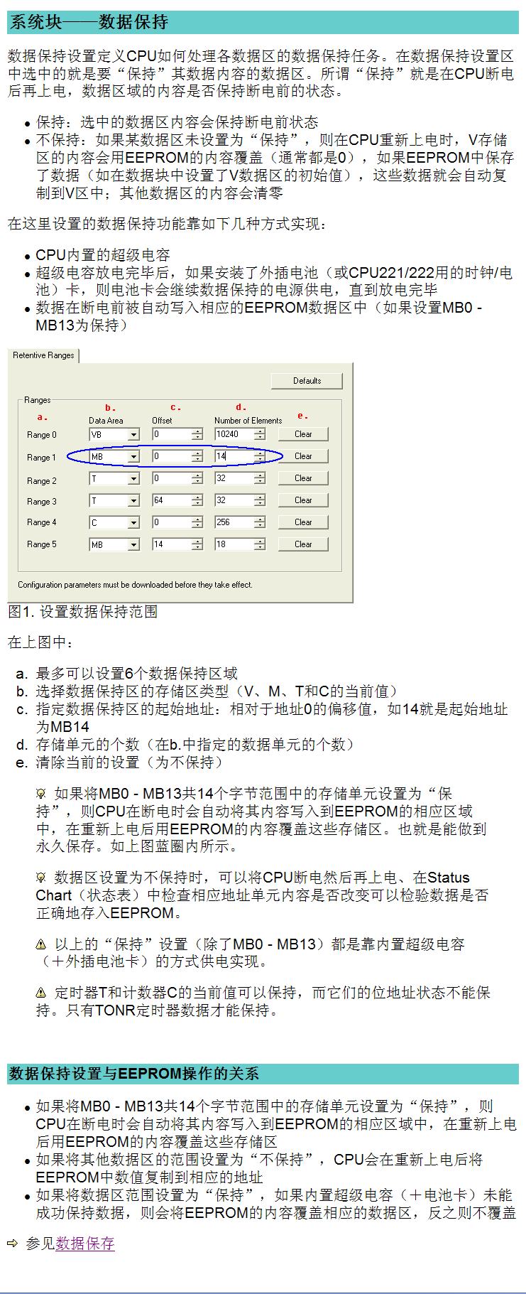 應用S7-200時,可以選用以下幾種數據保持方法: