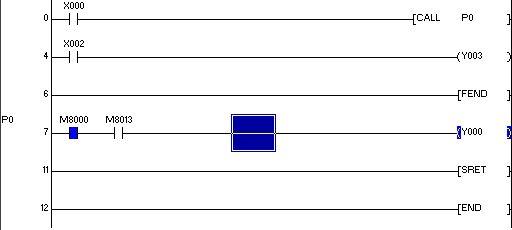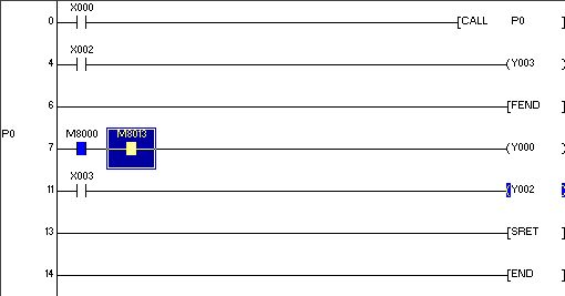 是三菱的呵呵!子程序調(diào)用的時候!我一直導(dǎo)通的,后來子程序不調(diào)用了!Y0的映像區(qū)就一直O(jiān)N了!