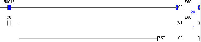 在用軟件模擬的時候M8013每動作1次,C0數值就會加1,