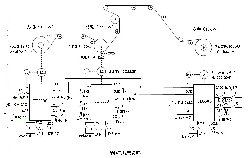 用艾默生TD3300型變頻器可以組成該系統。根據不同卷材、不同的張力和線速度有成熟方案。