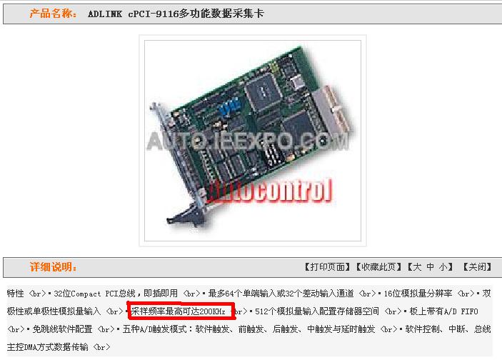 網(wǎng)絡(luò)上baidu到的ADLink cPCI-9116卡的參數(shù),采樣頻率最高位200kHz。