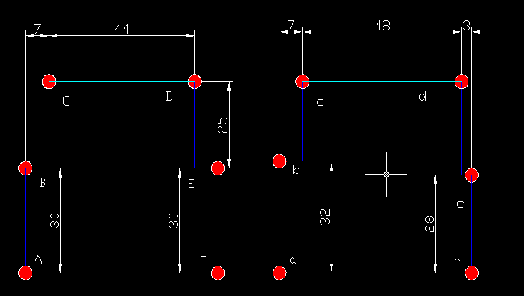 左邊的圖形是我所需要的,在A,B,C,D,E,F點沖孔,A移動到B,用步進電機移動沖頭,單向5次; B向C移動沖頭的同時,