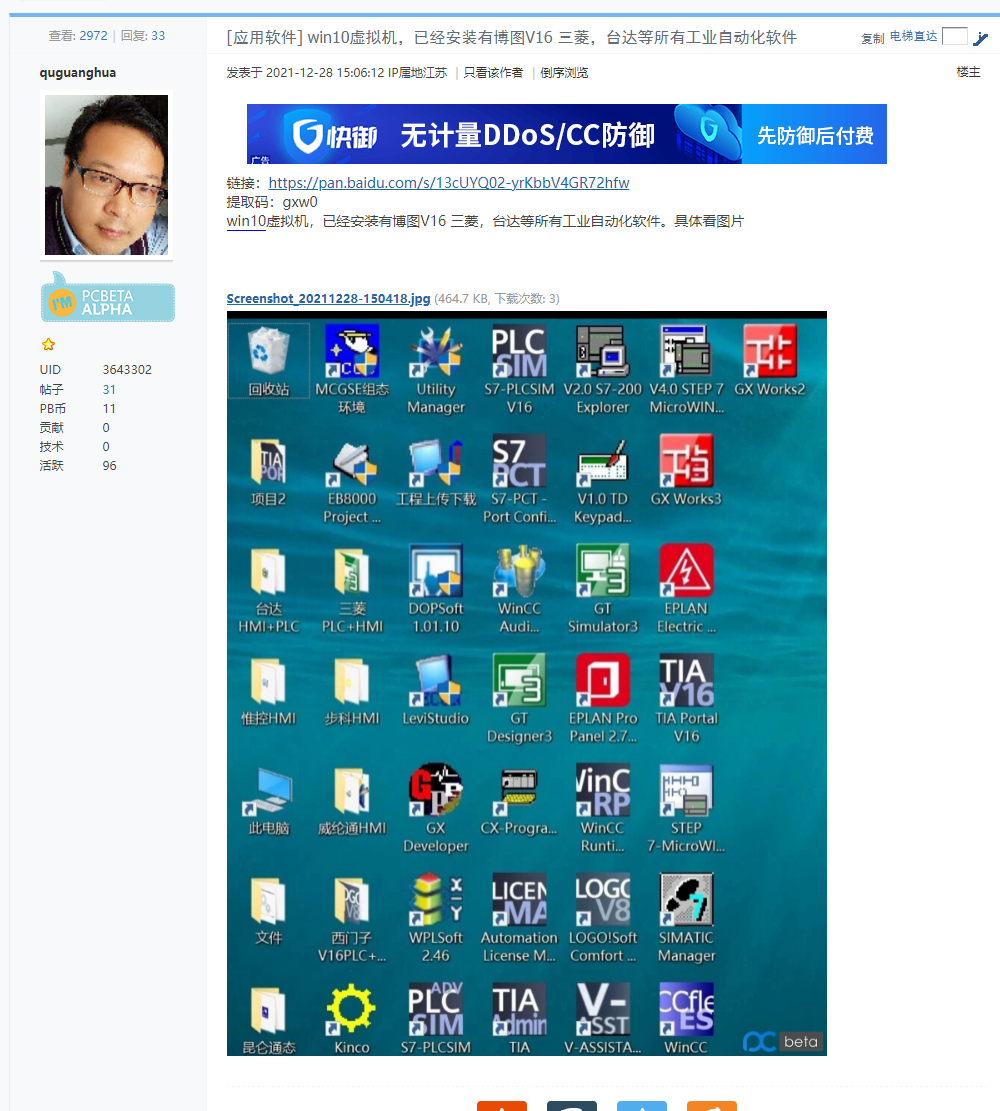 這位兄弟發過一個虛擬機超級好用,里面包括了大部分工控編程軟件。可惜我看到時連接已經失效了,也不知道這位兄弟在不在壇子里,能看到的話聯系一下看看能否再次分享一下,造福壇子里的兄弟們。。