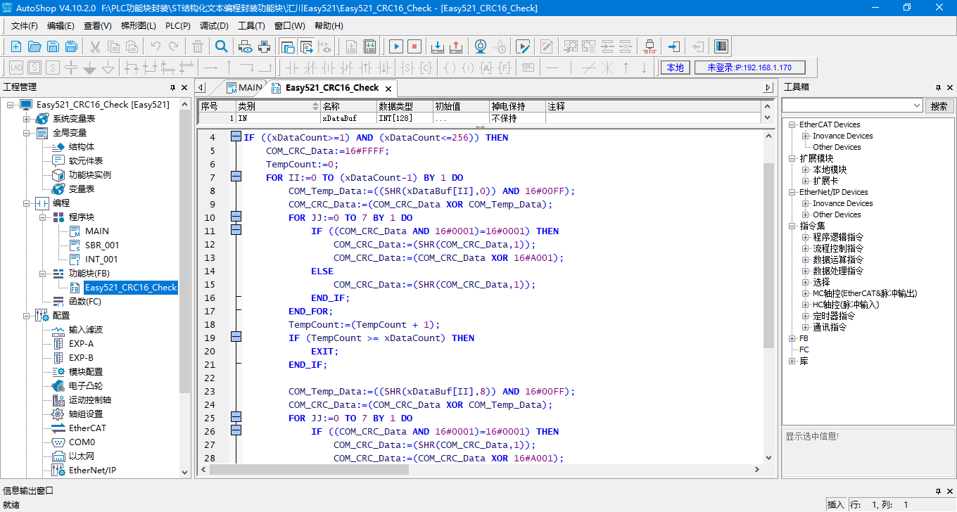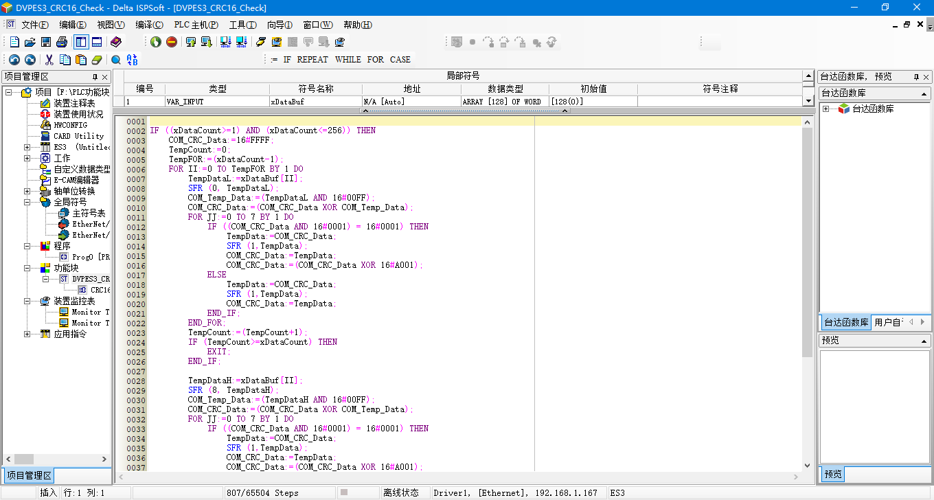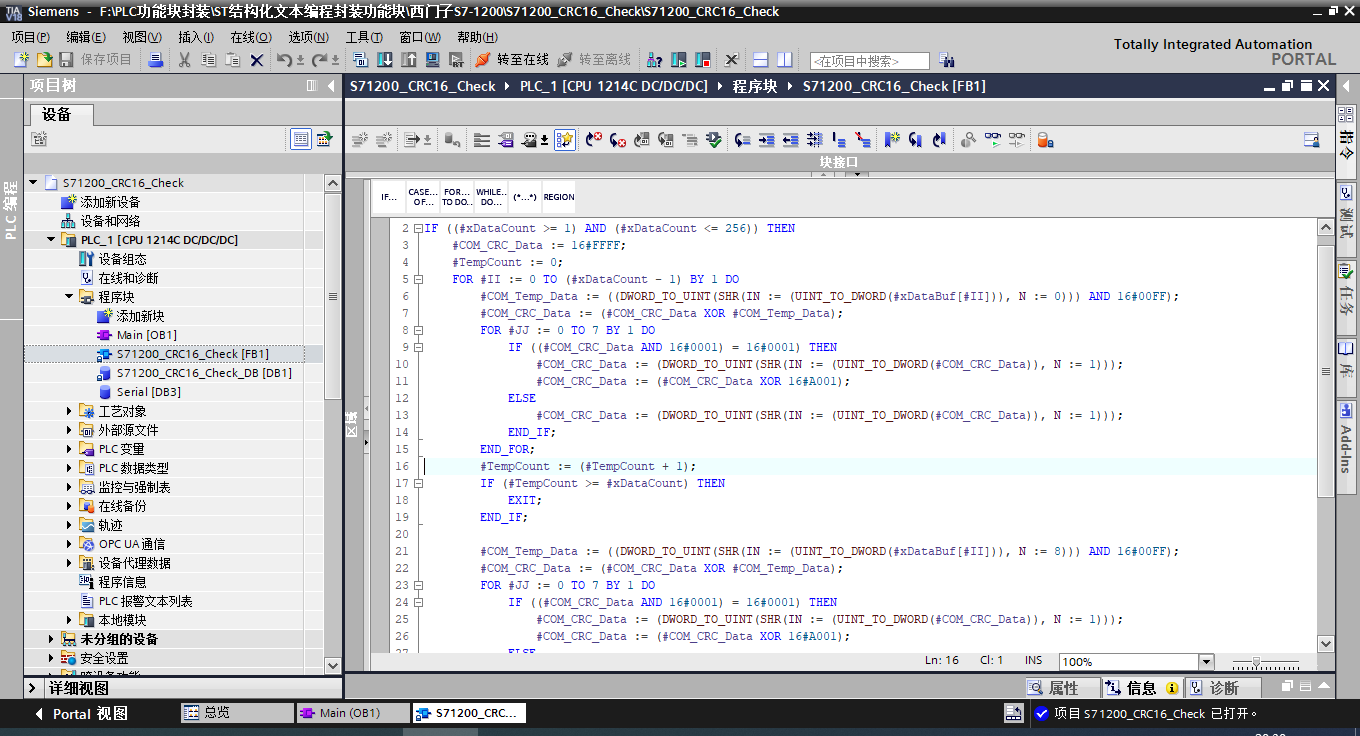 8種PLC結構化文本編程封裝CRC16校驗功能塊