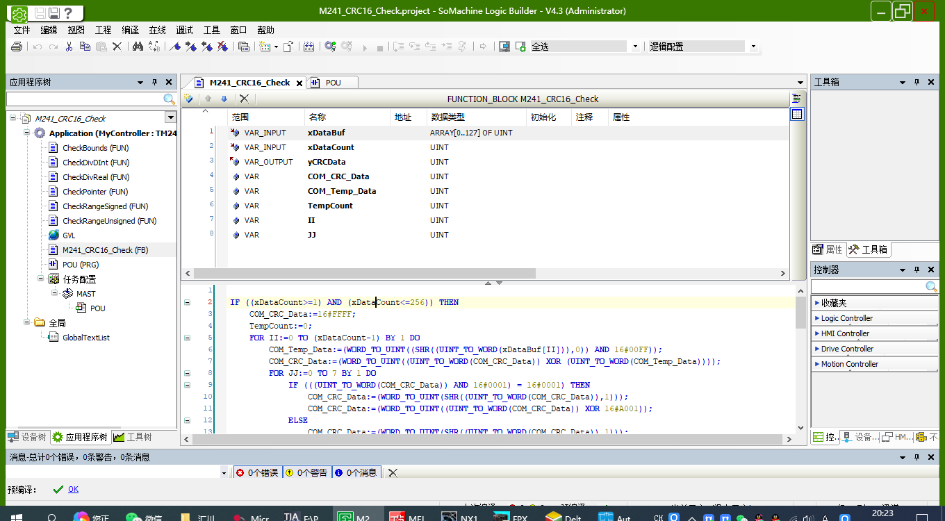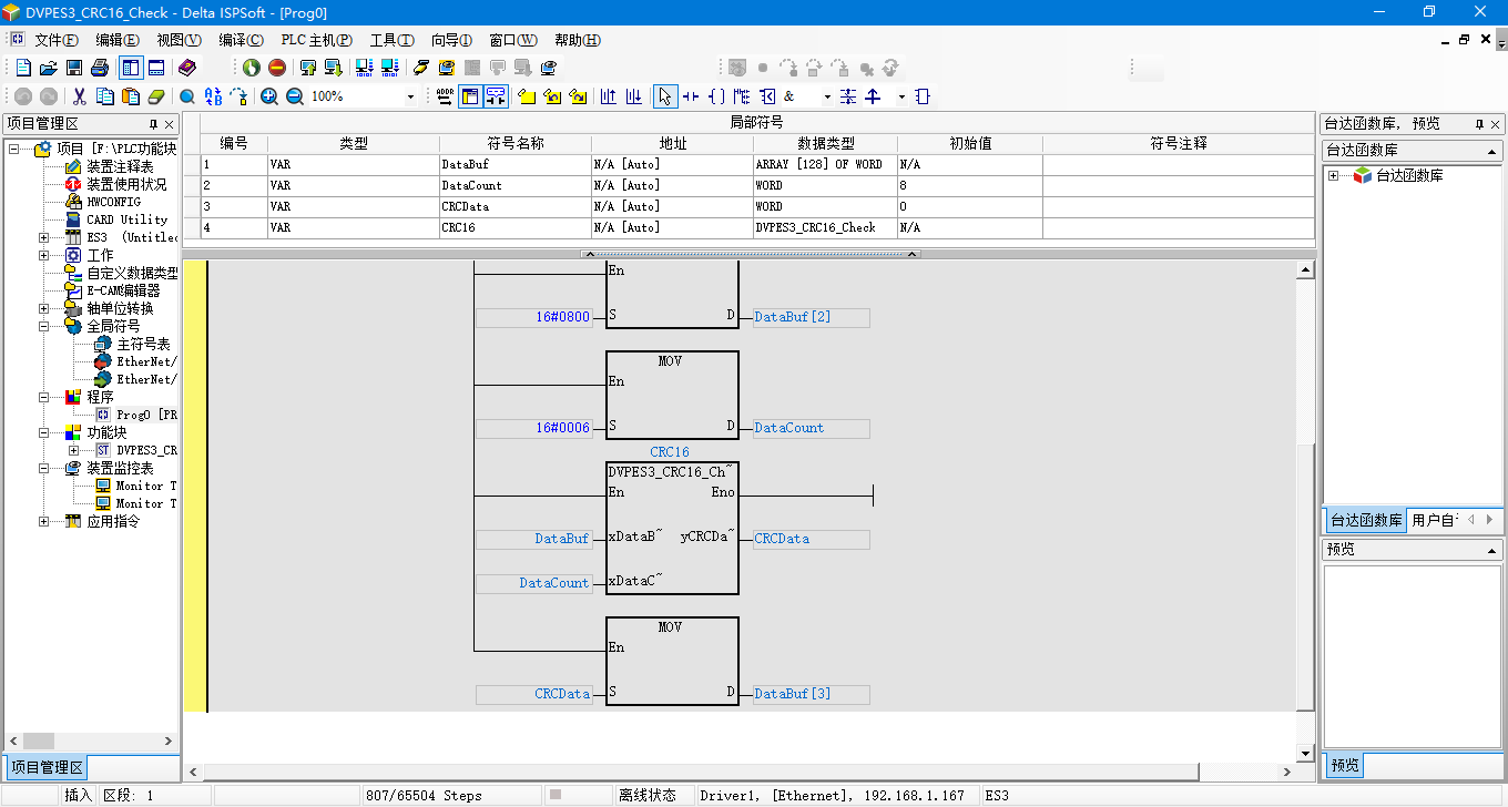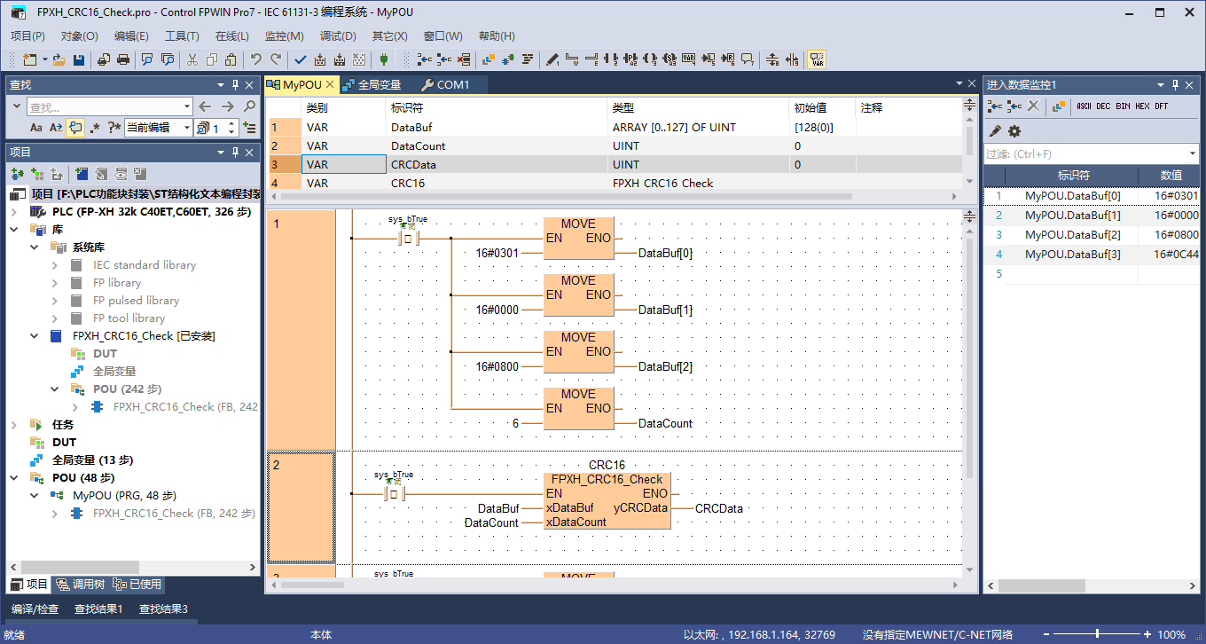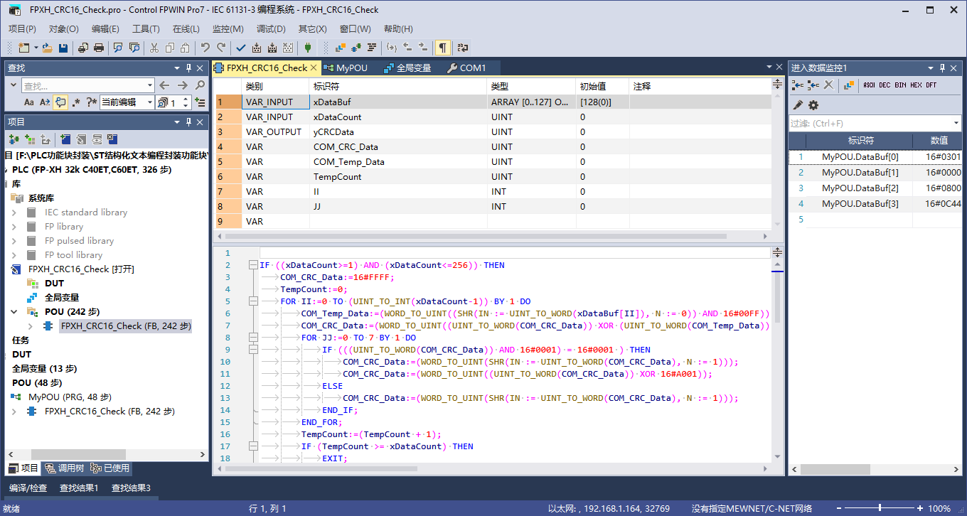 8種PLC結構化文本編程封裝CRC16校驗功能塊