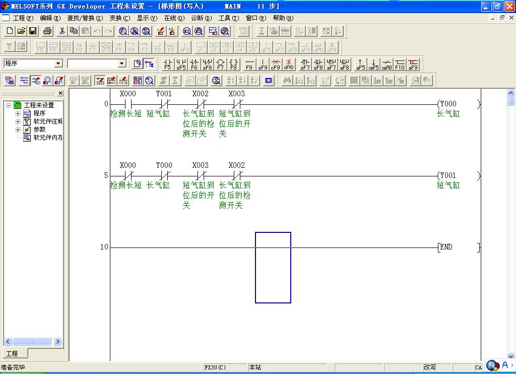 如果執行分類工件就是檢測的工件,這個程序就比較簡單,這臺機器就是這點麻煩,檢測到的工件不是馬上分類的工件,它的下面的下面的那個才是分類的工件,所有有一個動作和檢測的置后,我就不知道怎么編程了~~