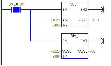 14623這個(gè)值不就是模擬量通道1的輸入值A(chǔ)IW0嗎,