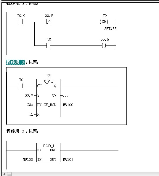 當I0.0(啟用條件)滿足后定時器得電延時5秒后,Q0.5得電,同時你又把定時器給切斷了電源,這樣Q0.5始終不能得電了。如果你想用Q0.5做脈沖指示,也不能正常顯示,所以意義也沒有了。T0做5秒脈沖是可以的。