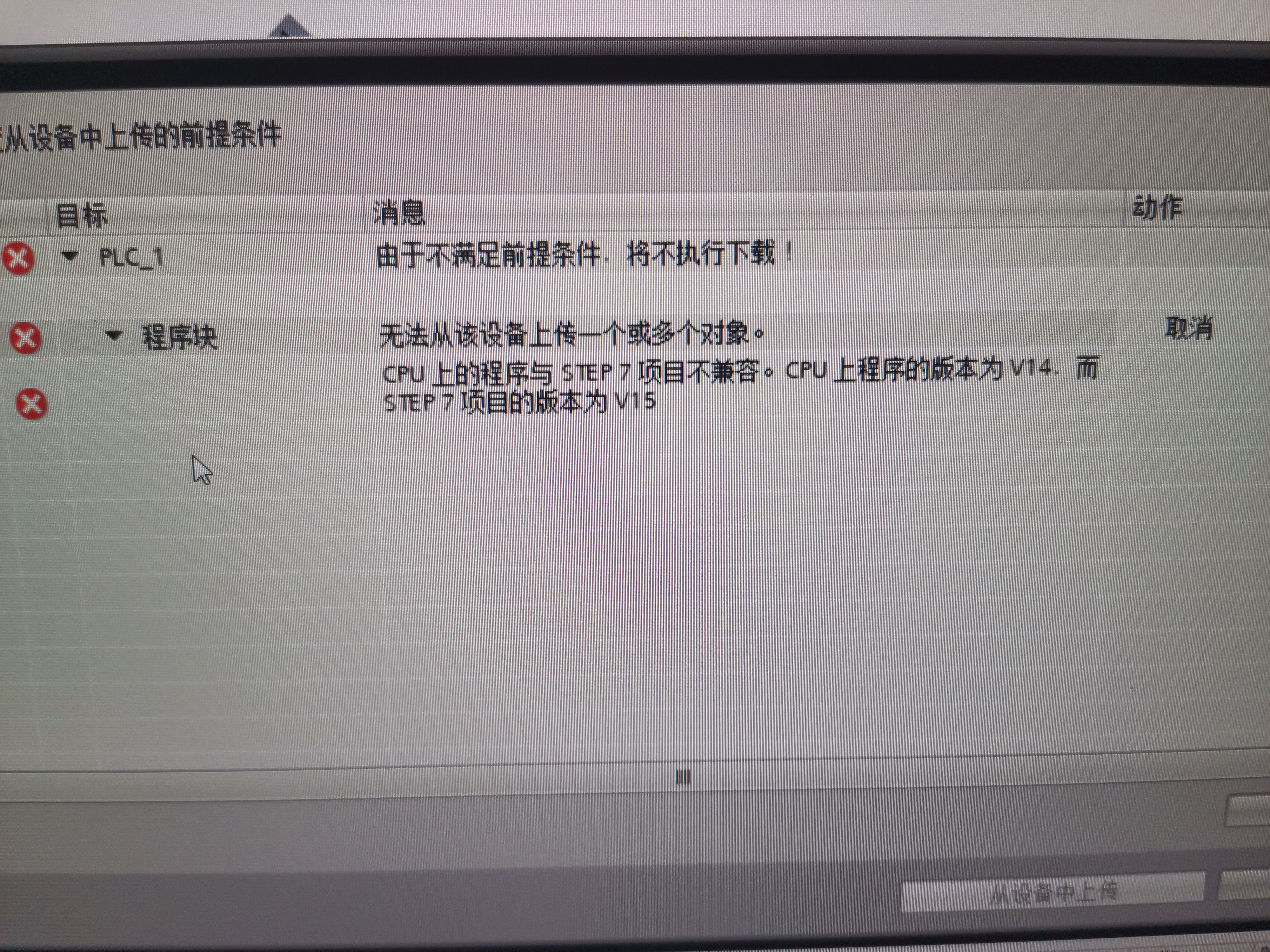用原下載版本的博途 上傳 ,再 用 V15 打開
