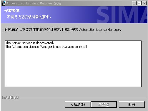 您好!我在安裝STEP7_V54_SP3_CN軟件的時候 ,到最后安裝Automation License Manager是出現  安裝終止!
