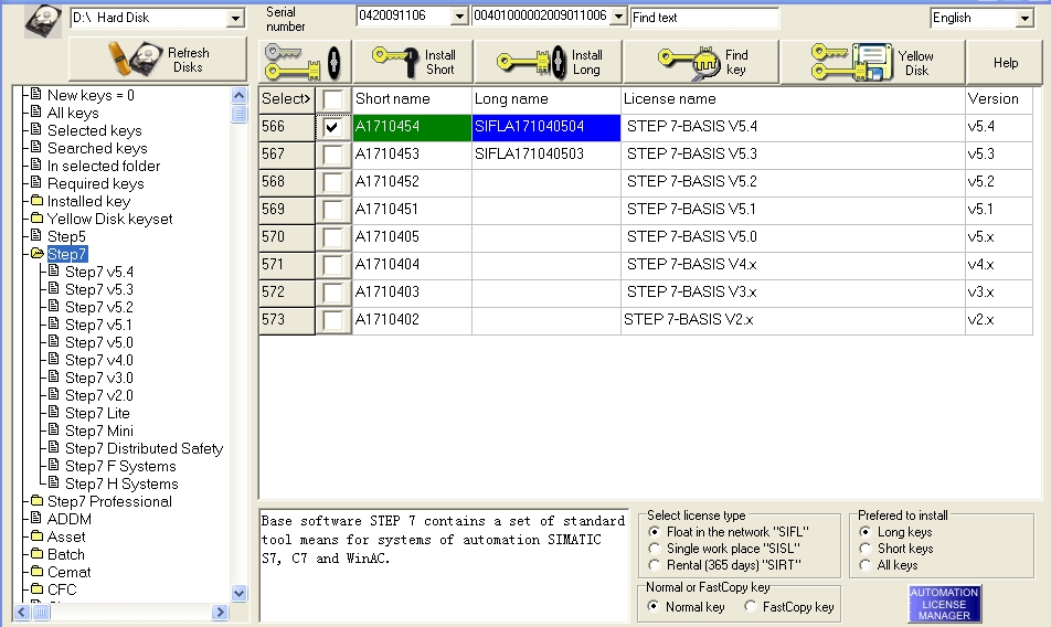 以STEP7_V5.4為例,打勾后,在第一個鑰匙按鈕上點擊既可完成授權.