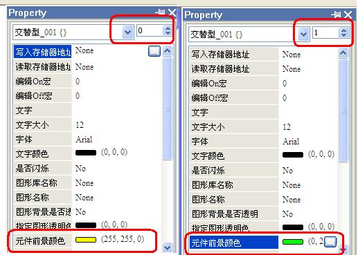 在屬性中選擇0狀態(tài)時(shí)前景色和1狀態(tài)時(shí)前景色即可。