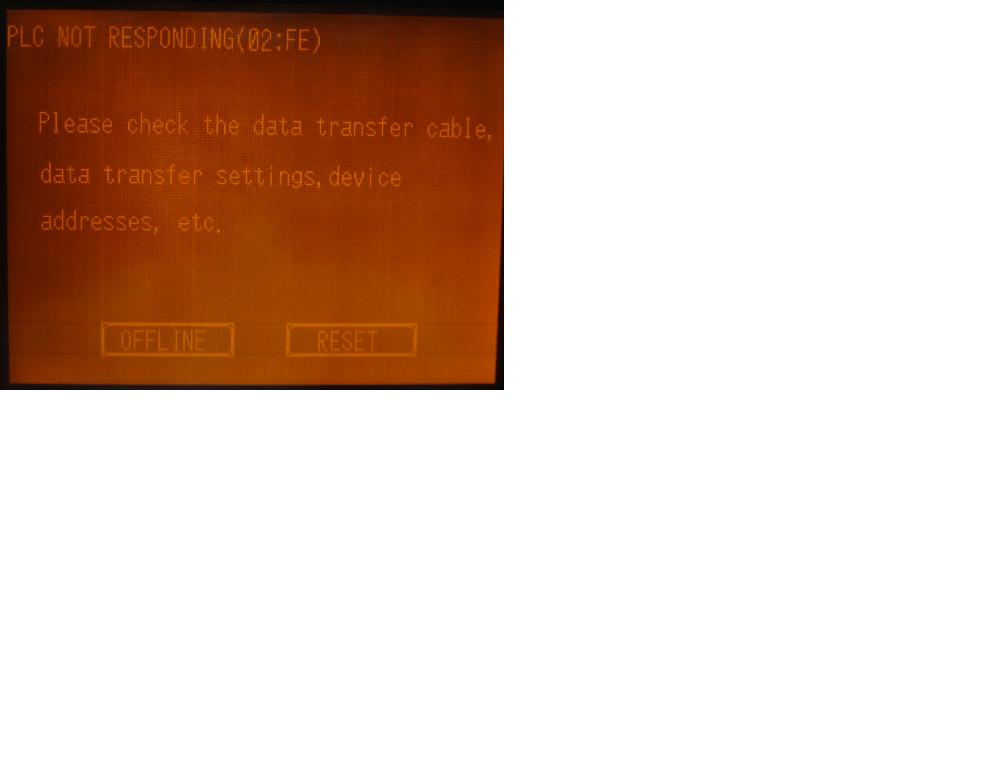 我的 proface現在無法操作.  開機后出現的畫面, 觸摸屏上的按鈕無反應, 左下角有信息: plc  not connected (02:FF);              隨便按幾次后就會出現另外一屏幕,  左上角顯示信息, plc not responding(02:FE)  ,屏幕中間信息: pls check data transfer cable, data transfer setting , device addresses , etc .