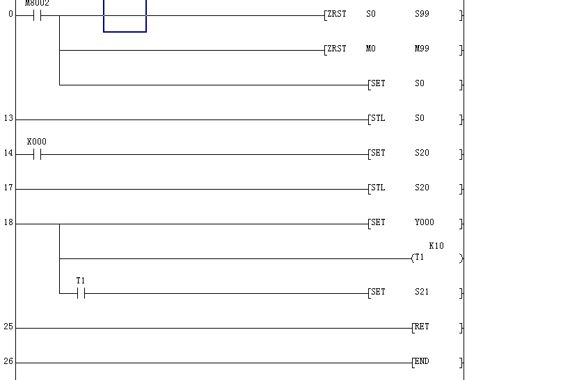 我的RET指令是接在S20后面,也就是和11SET21并聯,轉換時不能通過,而他的這個圖上RET指令左端是直接接在母線上的,書上的例子都是接在S20后面,到底哪出了錯誤啊?急