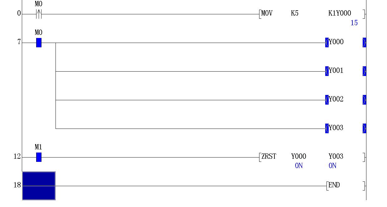 下圖中我有兩個問題想不通:一 明明傳送是5,怎么結果是15。二 M1接通時,怎么Y0-Y3不能全部復位。謝謝大家!