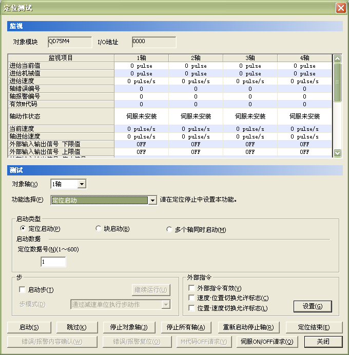 本人用Q06UDHCPU+QD75M4連接MR-J2S-20B伺服驅動,再接伺服電機。