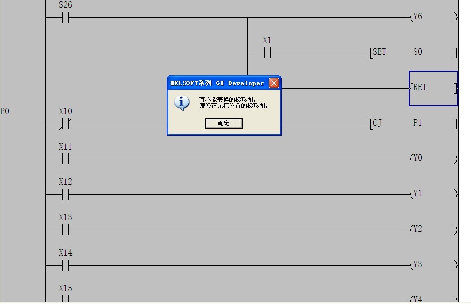 三菱的子程序結束,順控指令步結束等都需要直接在母線中直接寫。報警信息已經直接給你指在問題哪里了,修改就可以變換。