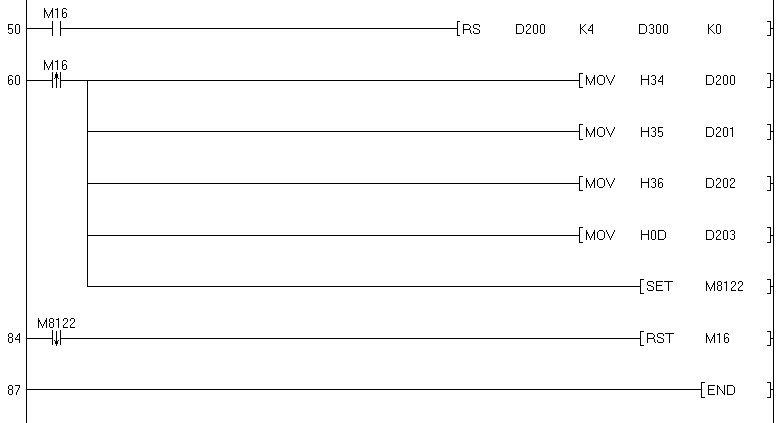 嘗試:用第一個包的M8122下降沿觸發(fā)一個輔助繼電器點(diǎn),再用輔助繼電器點(diǎn)發(fā)送下一個包。結(jié)果是只能發(fā)第一個包。