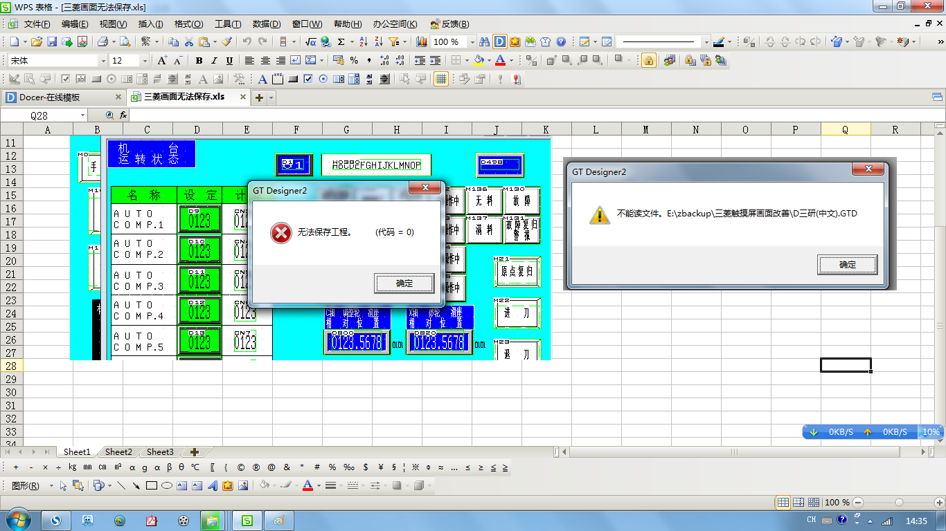 求教各位大蝦:我的三菱觸摸軟件GT-Designer2無法把畫面程序保存到電腦,原保存的畫面也無法讀取,請教問題出在哪里?